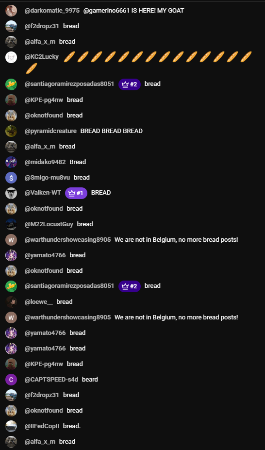 Ok actually holy damn we got several hundred to say bread… thats peak
