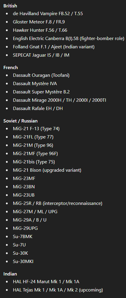 this is Chat GPT, but still, that is a good amount of russian + other nation jets