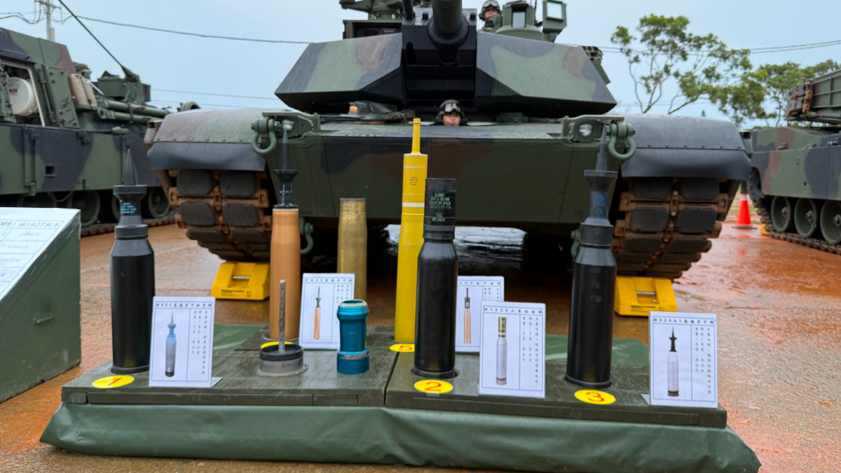 “Taiwan’s “special edition” M1A2T main battle tank has a 120mm smoothbore gun as its main gun. The army displayed five different types of ammunition that can be fired at the Hukou training ground in Hsinchu today, including the M865 armor-piercing fin-stabilized practice round, DM63 armor-piercing fin-stabilized round, M1025 personnel-killing round, and M830A1 multi-purpose high-explosive round. The fifth type on the right is the “M829A1 armor-piercing fin-stabilized round,” which is the M829A1 APFSDS-T “armor-piercing fin-stabilized discarding sabot” made by the United States with a “depleted uranium” core, which can directly penetrate the Russian-made T-72 tank.”