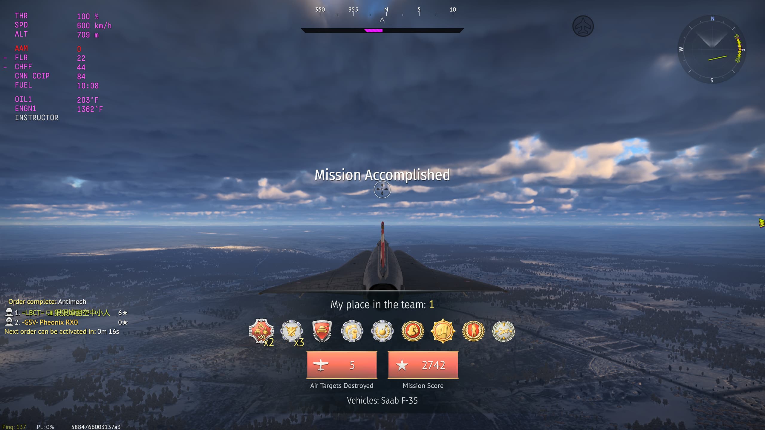 Im going 20 deaths and 54 air kills, but some of those games i need a 2 hour break lol, so far ive had 6 5 kill games in a full uptier. Whats more strange is i cant do that with the J35XS only the F 35 and the J35D lol