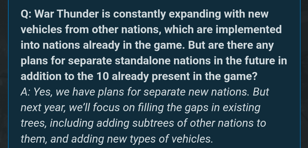 So whilst I agree we dont need anything new specifically, we really need older stuff actually finished and I would be more than happy with having 20+ vehicles overhauled instead of anything new.