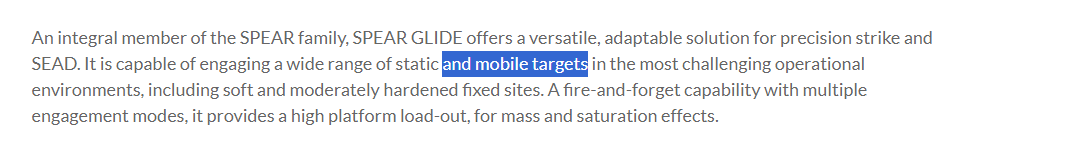 It is capable of engaging a wide range of static and mobile targets in the most challenging operational environments, including soft and moderately hardened fixed sites. A fire-and-forget capability with multiple engagement modes, it provides a high platform load-out, for mass and saturation effects.