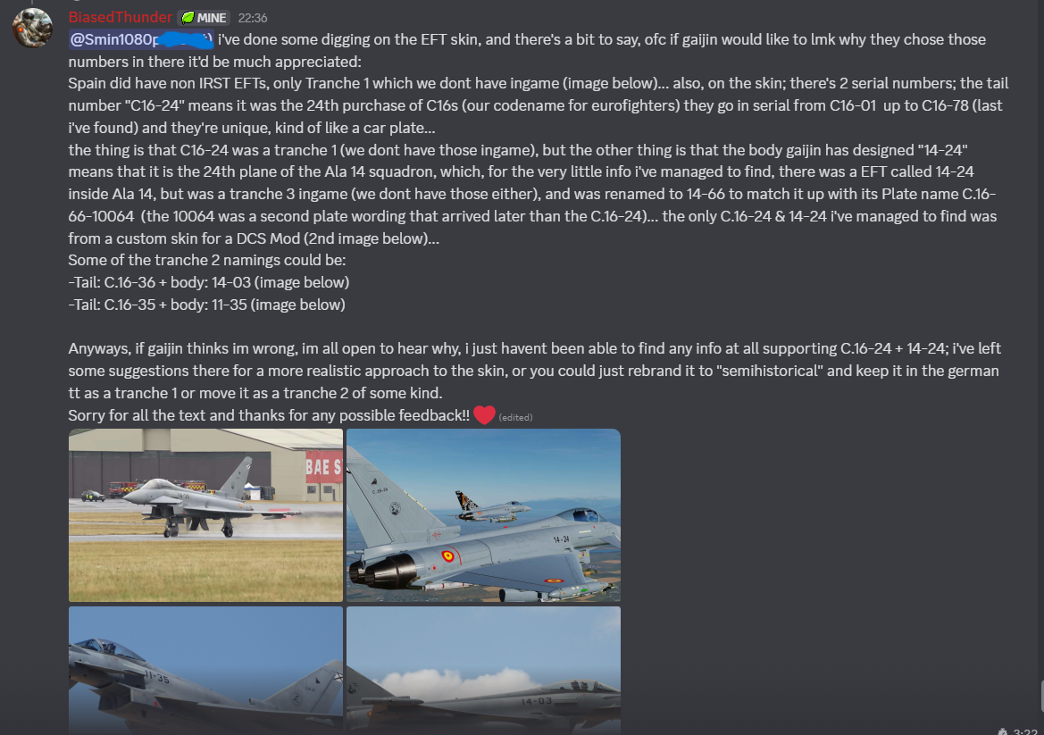 Fat chance the German EF still has the wrong numbers and actually represents a trenche 3 airframe and not a T2 blk10 like we have ingame
