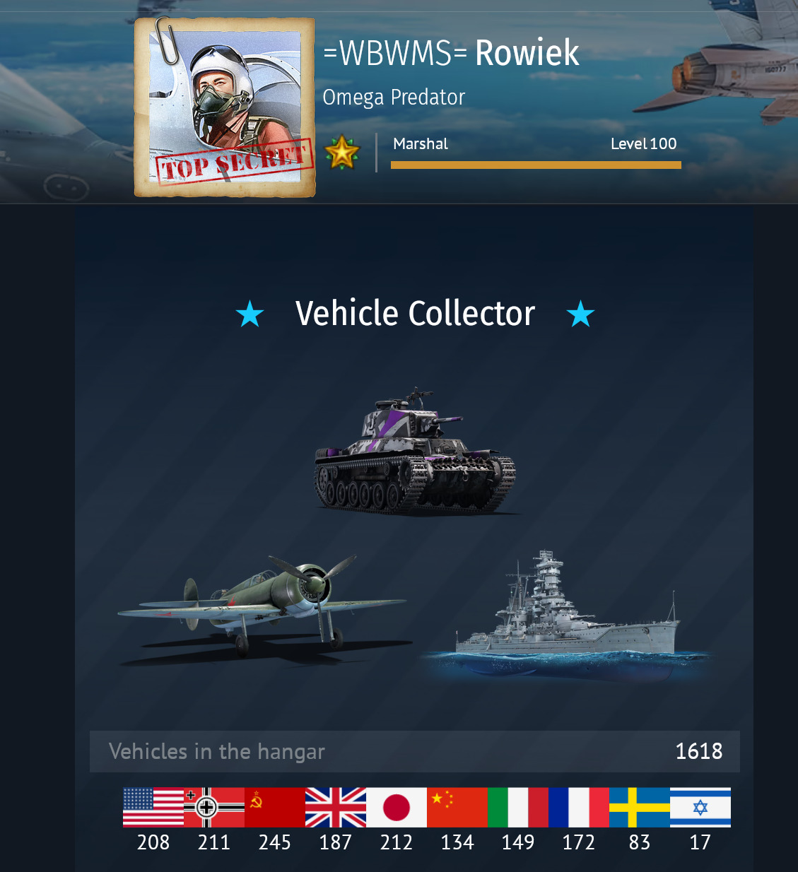 I have top tier Israel, ground/heli/air and that amounts to only 55 vehicles, which is the same amount I have in france, a nation in which I haven’t made it past rank 4 in