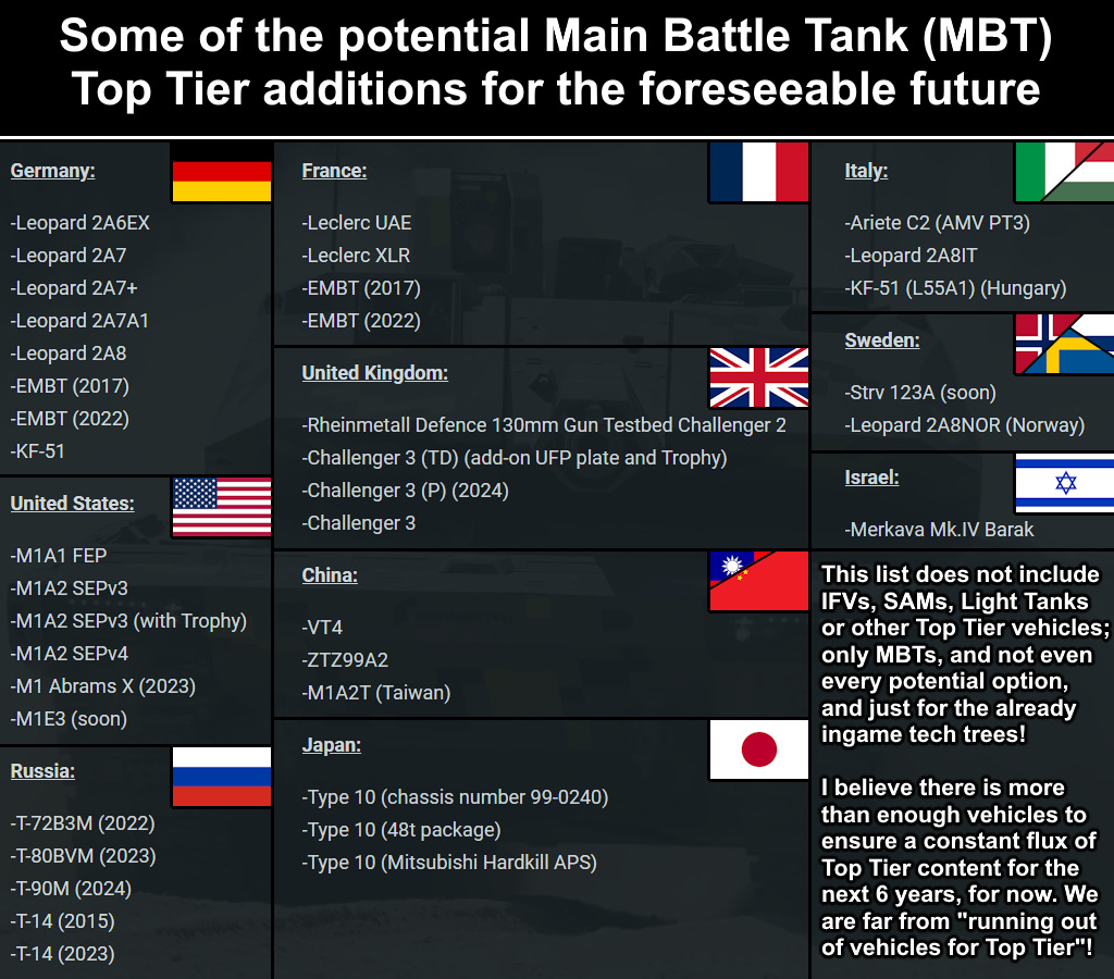 Gaijin could implement 1-2 new MBTs per update and we would still have MBTs for many years to come. Yet… 3 in 2 years is all we could get.
