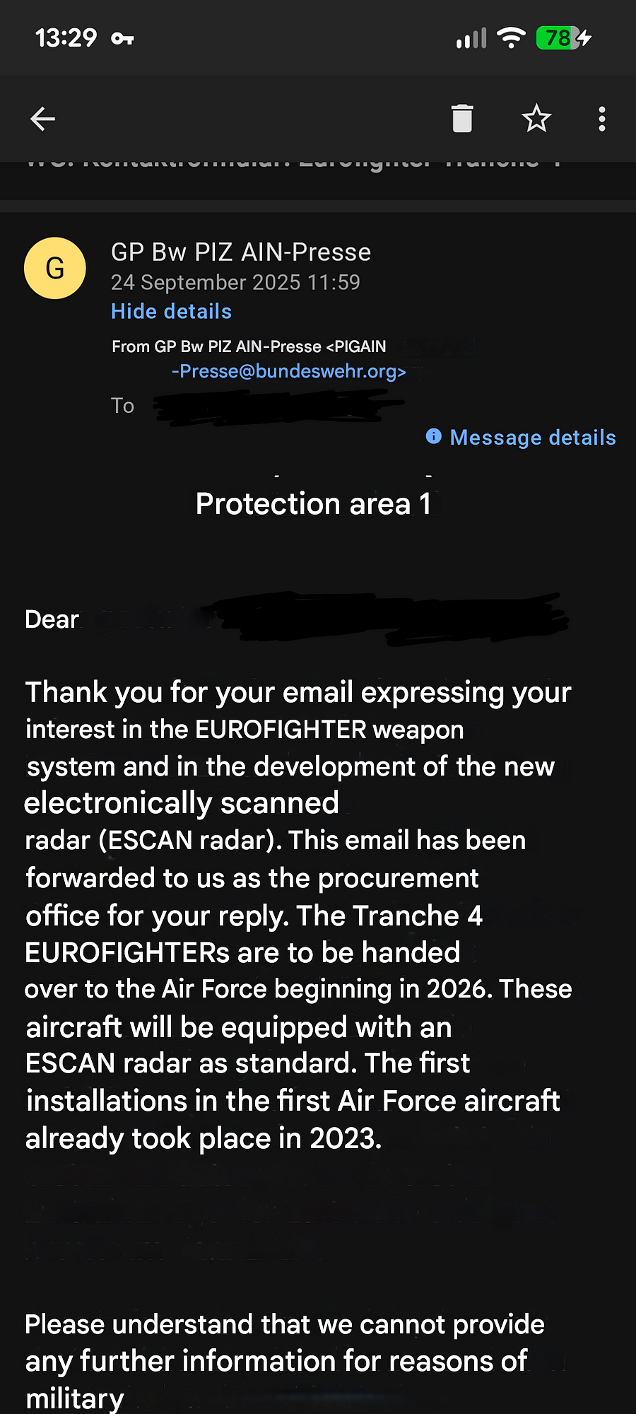 aesa ef has been in service for a while already