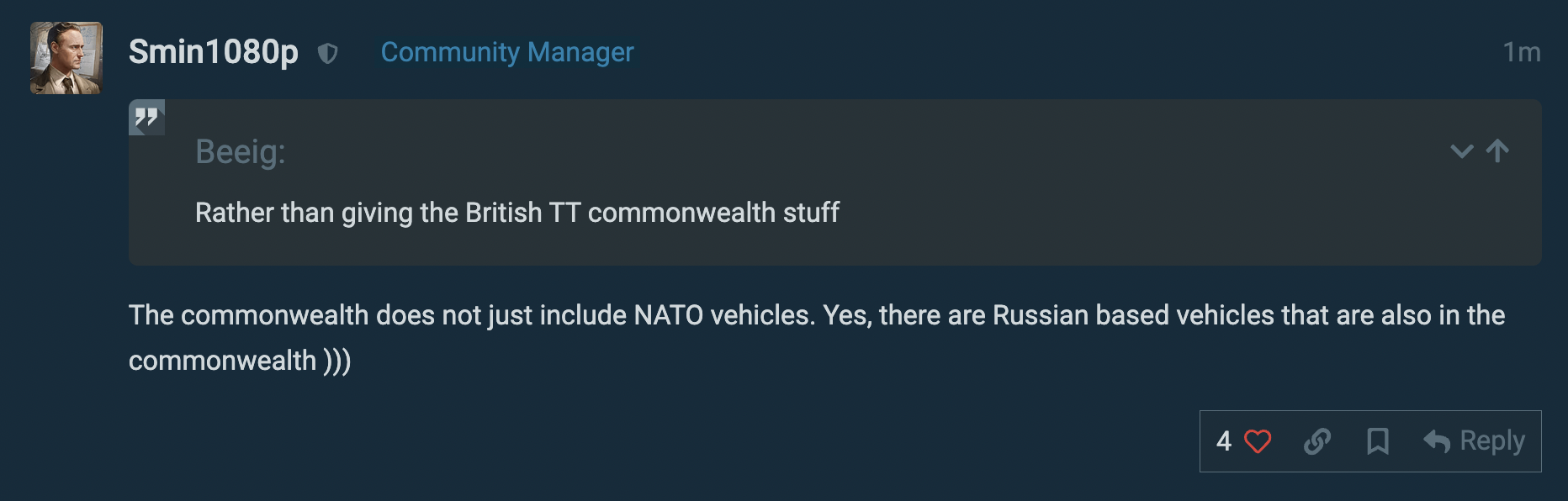 And you can talk about the BVVD Q&A, saying that the focus is top tier, but other nations receive WWII equipment for their TT. Yet, Japan does not.