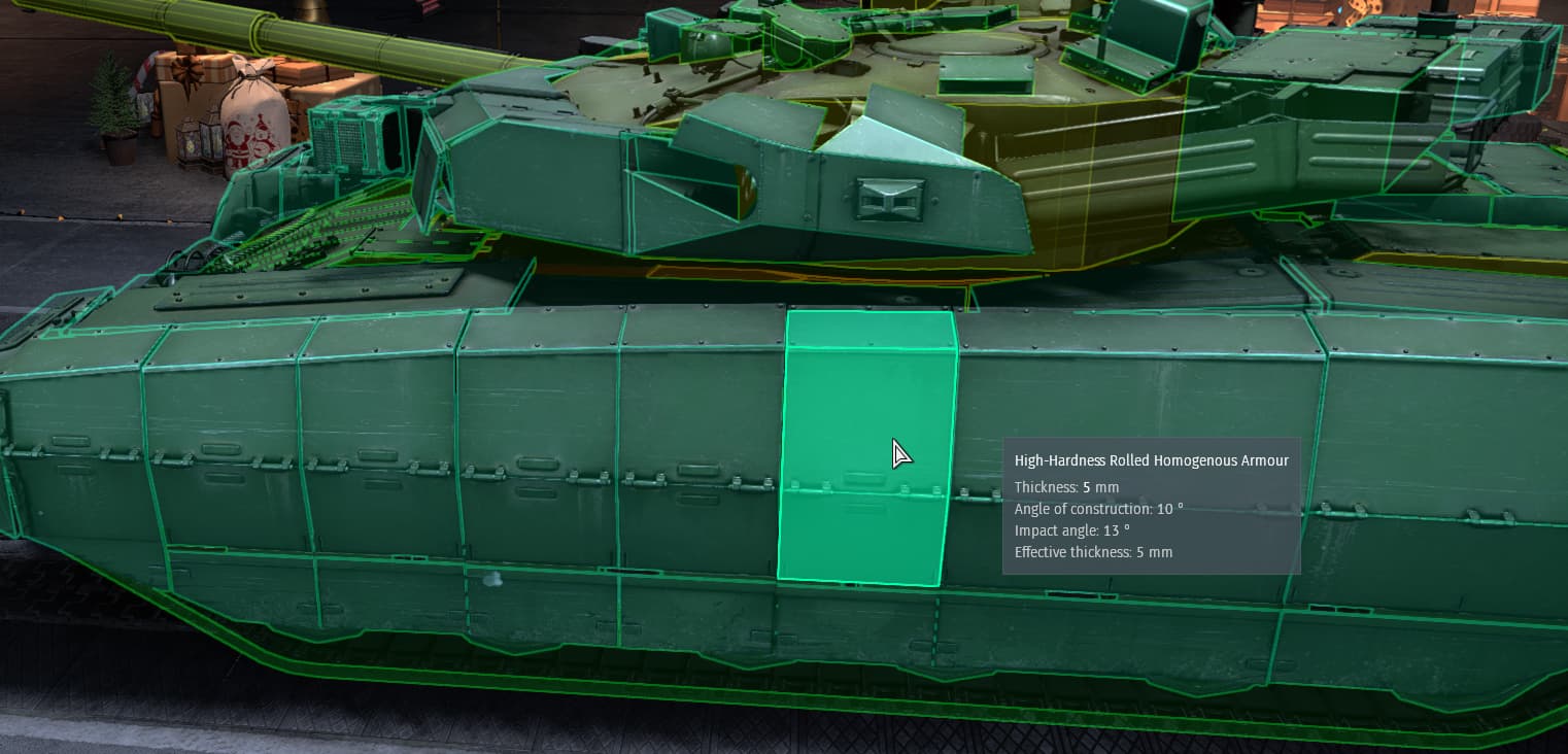 Afaik ERA only exists for the frontal half of the side skirts to protect the crew and autoloader from these 45* hits. Engine compartment is only covered by spaced armor. Oplot is indeed lacking some ERA but it should only be extended for this section which as of now is empty in game.