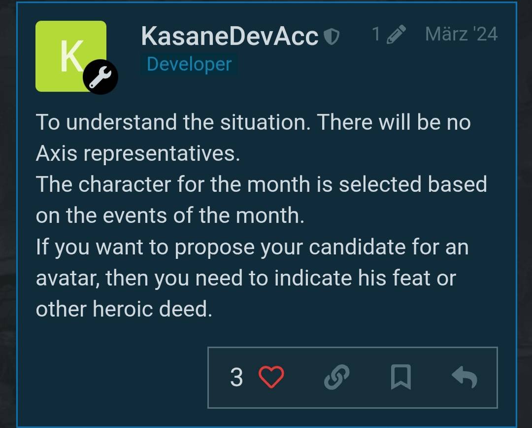 The main reason this reply is late is because I actually wrote it a few days ago, but it ended up sitting in my drafts. I haven’t played the game for a bit, so I couldn’t post it at the time.