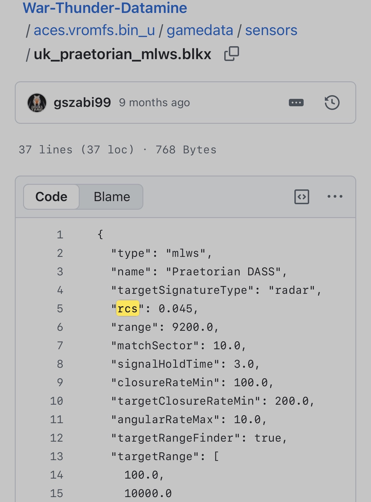 It does seem to be known though what the rcs values of air to air missiles are on average, and only because the Eurofighter’s radar based maws was configured to pick up missile rcs at a certain range (0.045m^2 at 9.2km)