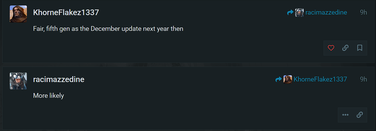 @KhorneFlakez1337 told 2 months ago 5th gen wont be added in the dec update nor 2026. I was right all along