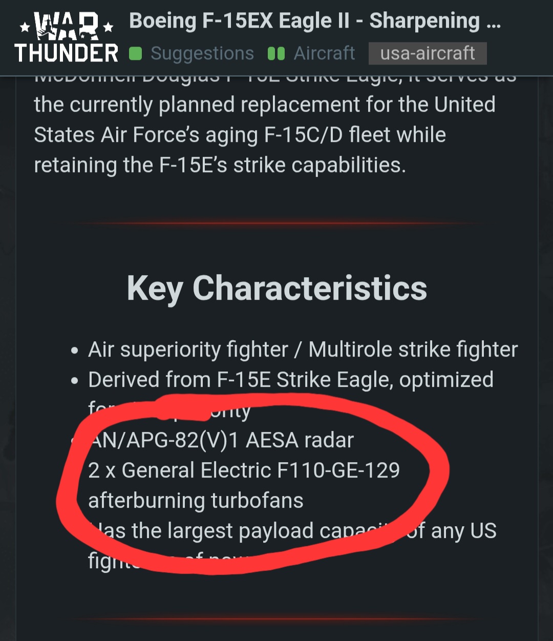 so it seems more like it is an upgraded F-15D or early F-15E, so ingame it probably gonna end up as another F-15 GE
