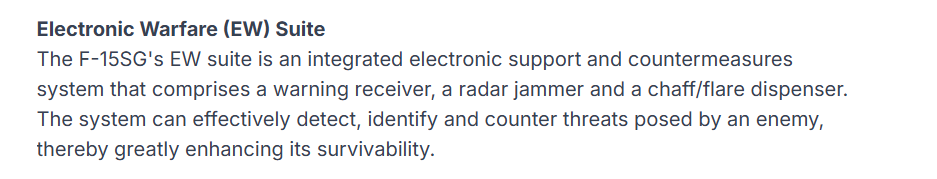 It seems F-15SG is just F-15E with AESA radar, so not even a changed RWR or engines compared to F-15E in-game?