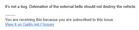 Please in a previous bug report for the ammo not causing destruction of the vehicle was rejected with the claim that it is external ammunition could you give some clarification here?