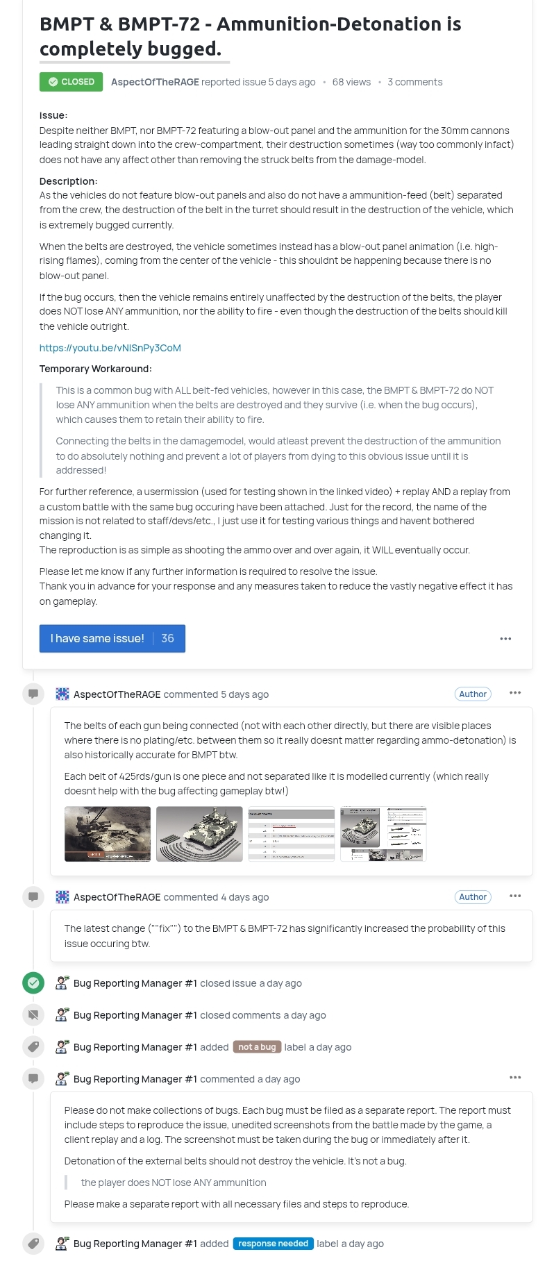 How come absurd reports like the one to asking to buff the BMPT not only get a response within an hour of posting them but also get accepted while providing no sources whatsoever or anything of substance when other reports sit there unanswered for months?