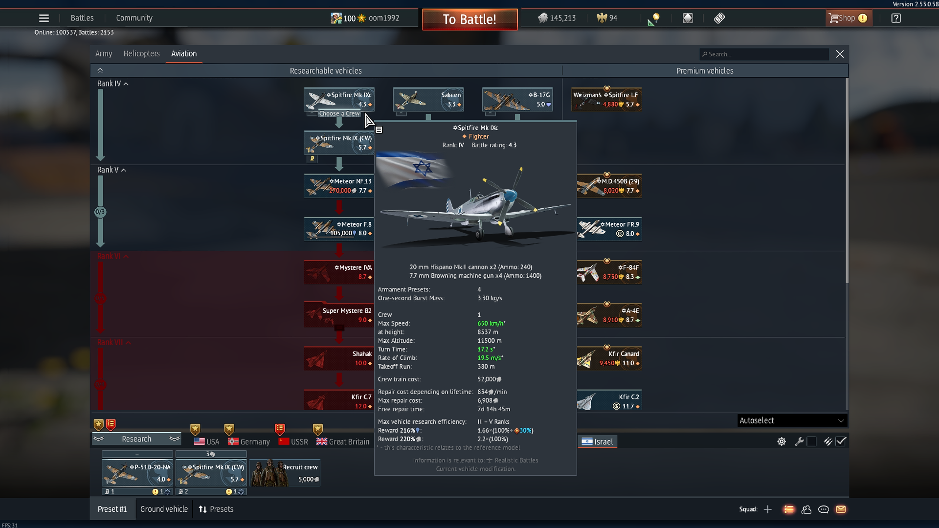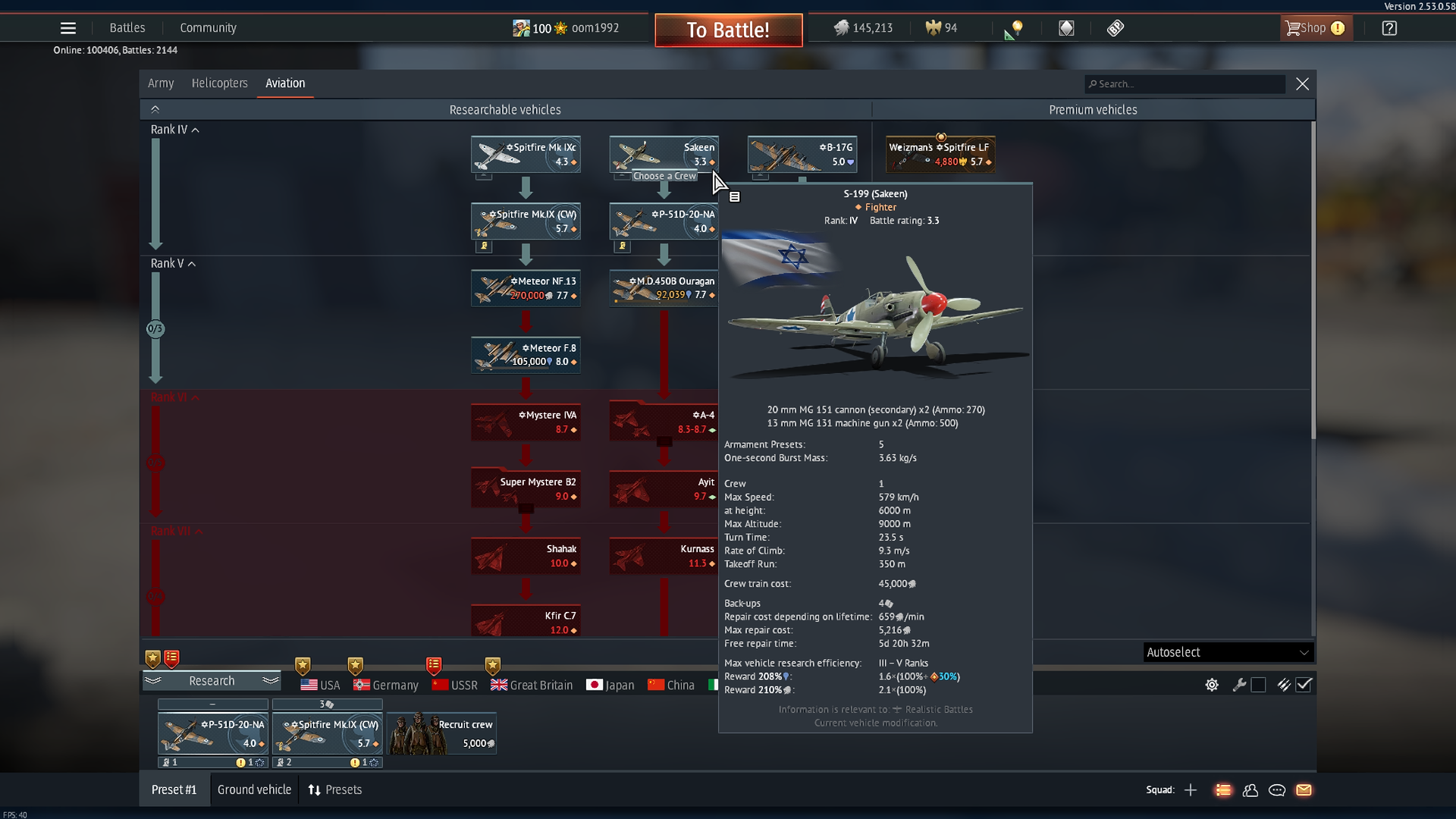 I suppose Sakeen moving down to rank II and Spitfire Mk.IXc go to rank III