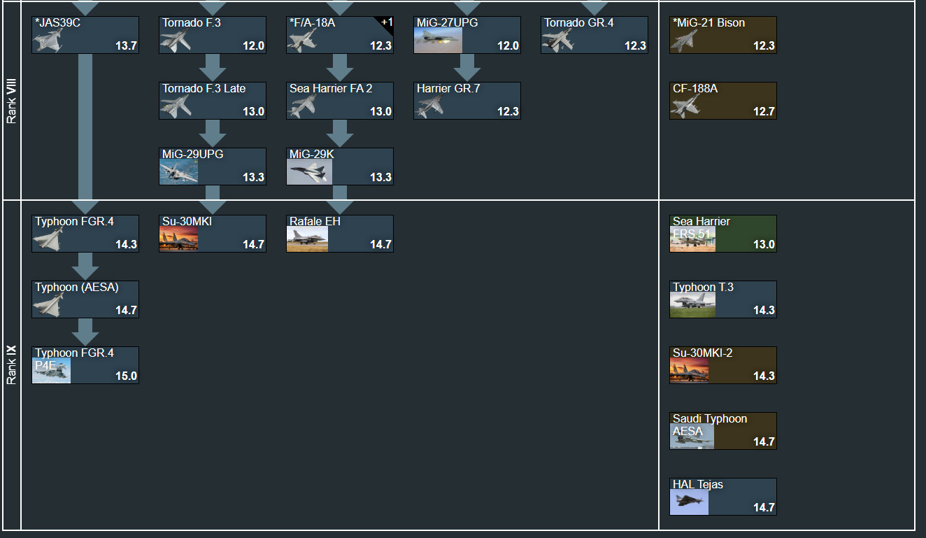 Also thrown in what the rest of it might look like with India seeing as how South Africa was just 1 and done for aircraft. I’ve followed Gaijin’s current practice of the domestic design and modified British design being outside of the TT and the only researchable additions are all Russian reskins + the Rafale.