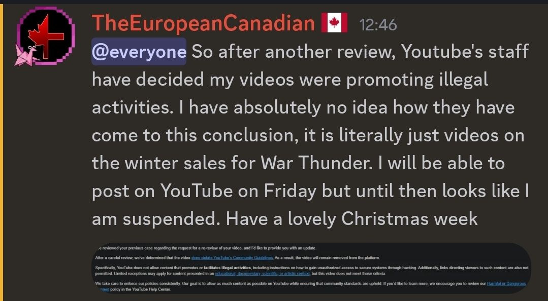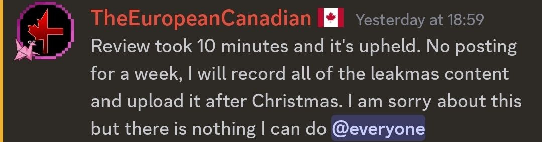 Well TEC won’t be getting any videos out since he’s been banned for a week lmao