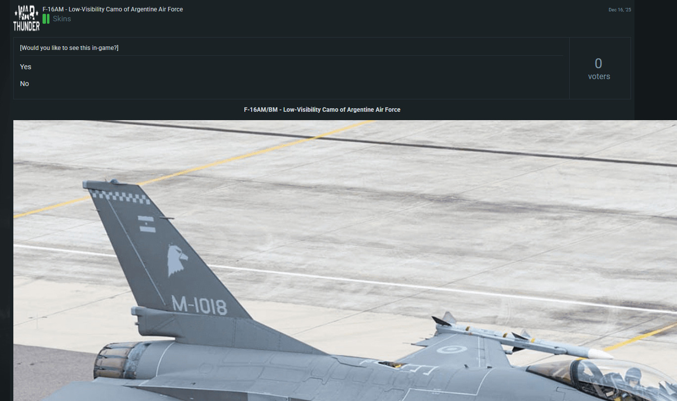 Also hopefully when Denmark gets added we will see an Argentina skin or we see actual Argentina F16’s alongside Denmark.