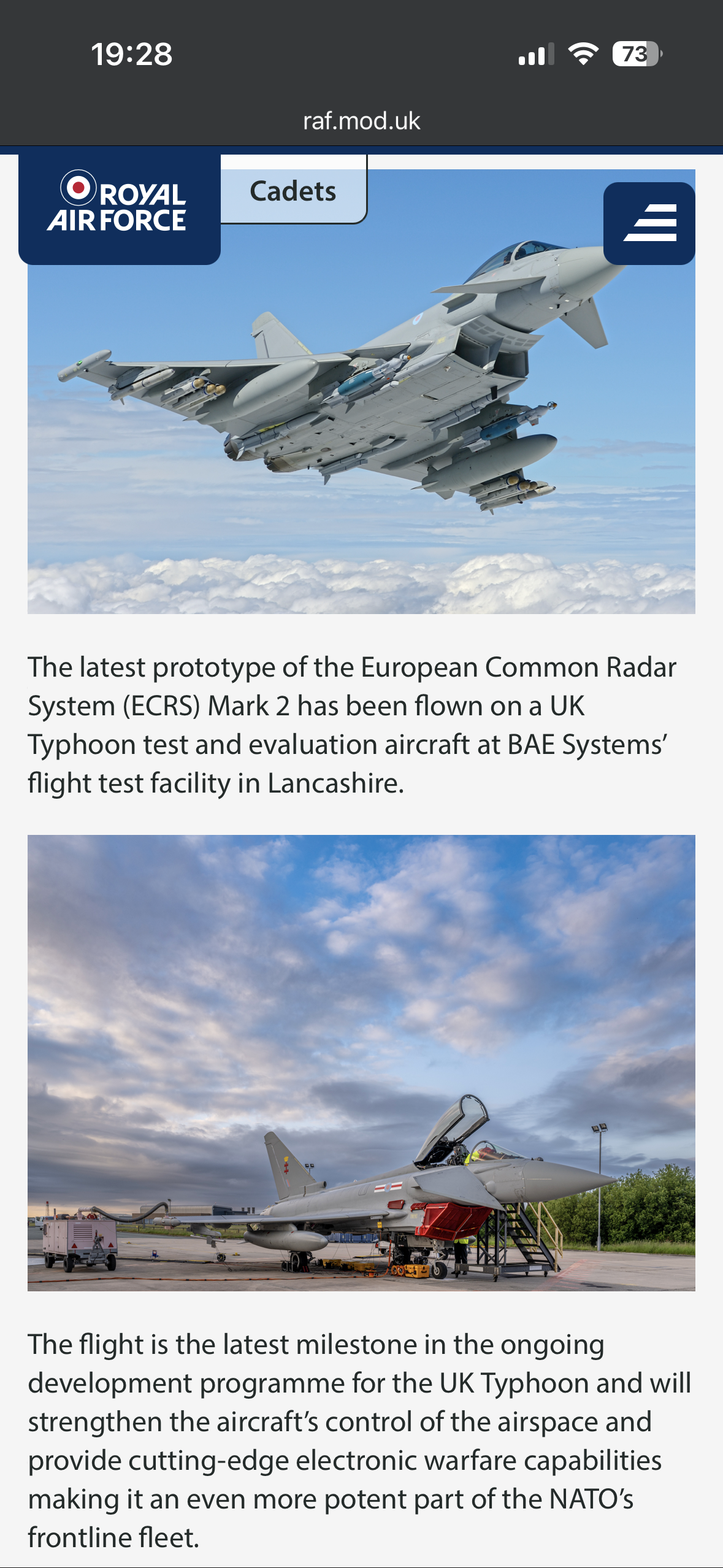 The investment will deliver an additional 40 advanced European Common Radar System (ECRS) Mk2 radars for RAF Typhoons, including 38 new systems and modifications to two test systems, ensuring radars will be fitted to 40 aircraft. These radars will simultaneously detect, identify and track multiple targets in the air and on the ground. Half a billion investment to upgrade RAF Typhoons and secure 1,500 British jobs - GOV.UK