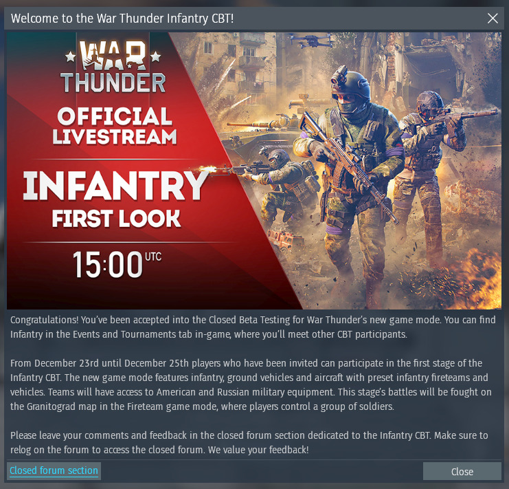 Our infantry mode CBT is coming up, and I’m very fortunate to have access to it, which makes me really happy. I’ve been looking forward to this for a long time, and I plan to play a lot. But at the same time, many active players like me will also be participating in the new stage of the winter event, including both air and ground content. Because time is tight, it’s hard for us to fully take part in the infantry CBT while also completing the winter event during the same period. I was wondering… could we make a change so that the battle points players earn in infantry CBT count toward the ground event? After all, we’re fighting on the ground, and I think this would make things less… “rushed,” maybe I can use that word XD. This way, we’d have more time to play the infantry CBT, provide more player suggestions and feedback, and help make the future updates of the game even better. :D