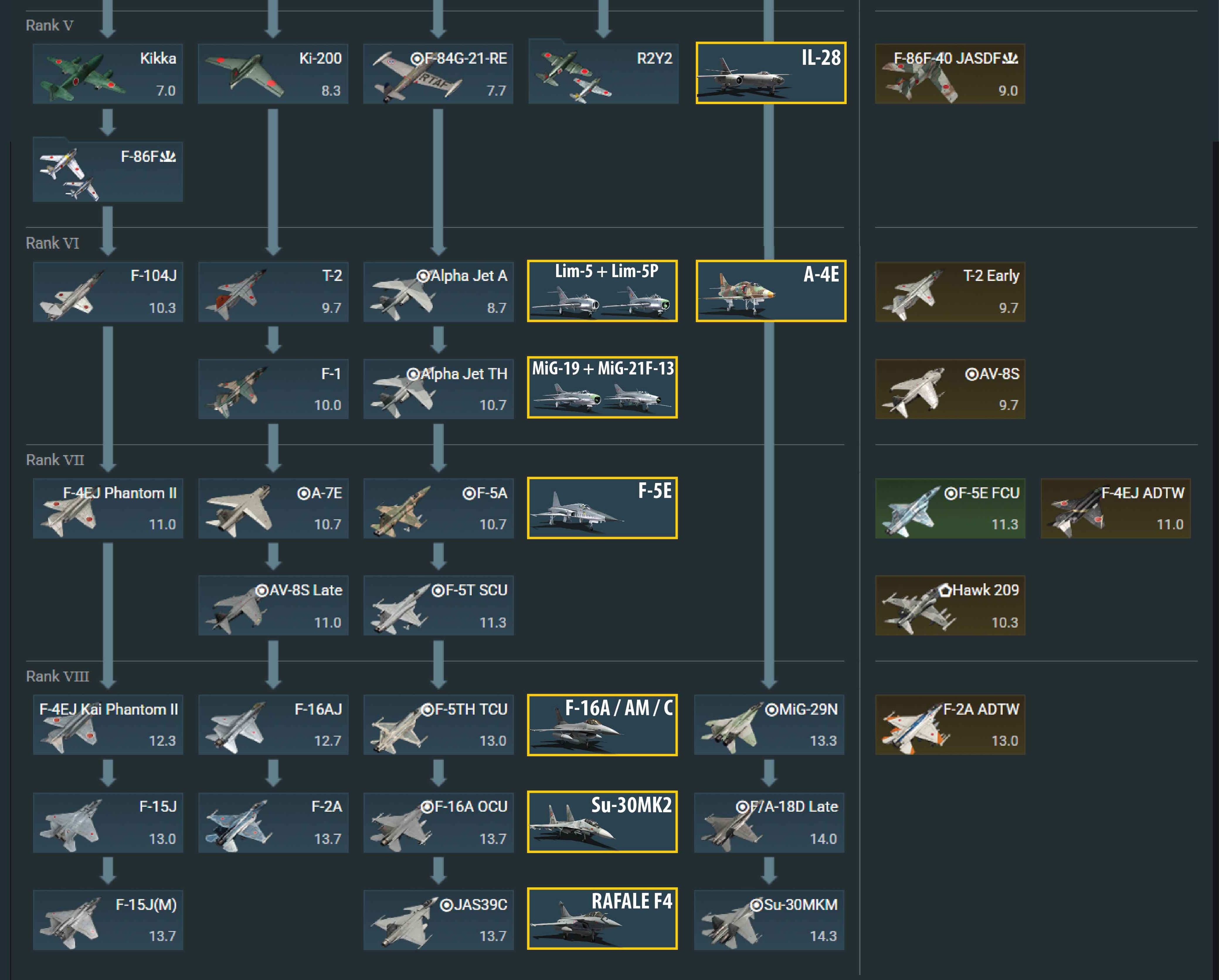 - F-5 and F-16 could be unnecessary saving player time to grind