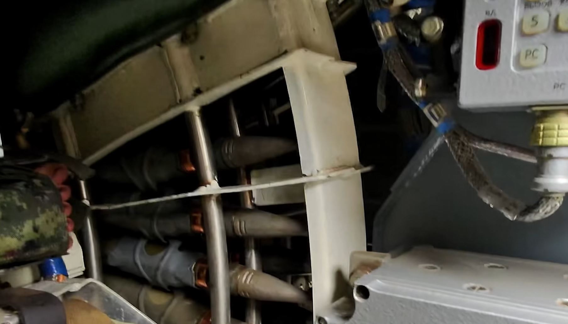 At around 12:20, he looks around the turret position and behind him are the fully exposed 30 mm shells.