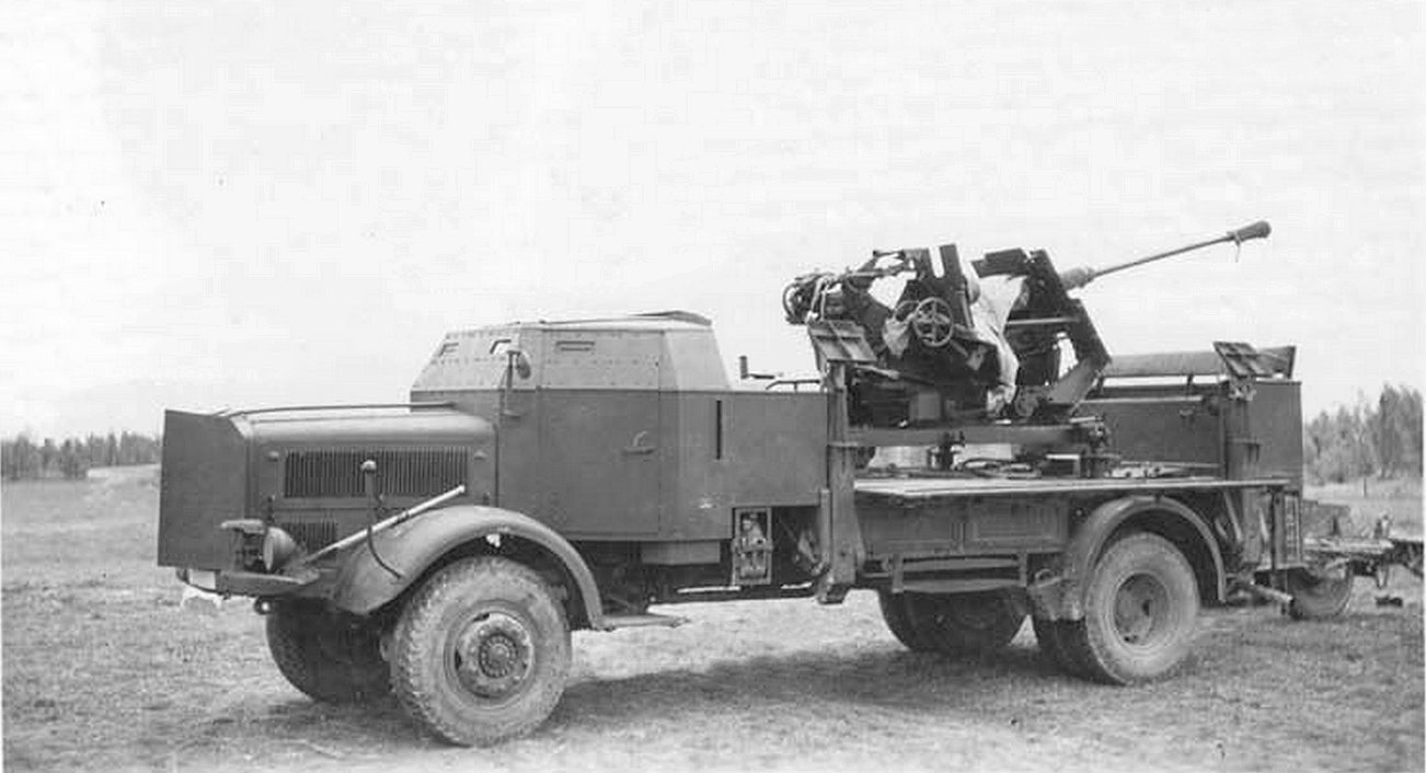 Schwere Geländegängiger Lastkraftwagen 4.5t Mercedes-Benz L4500A als Flakwagen