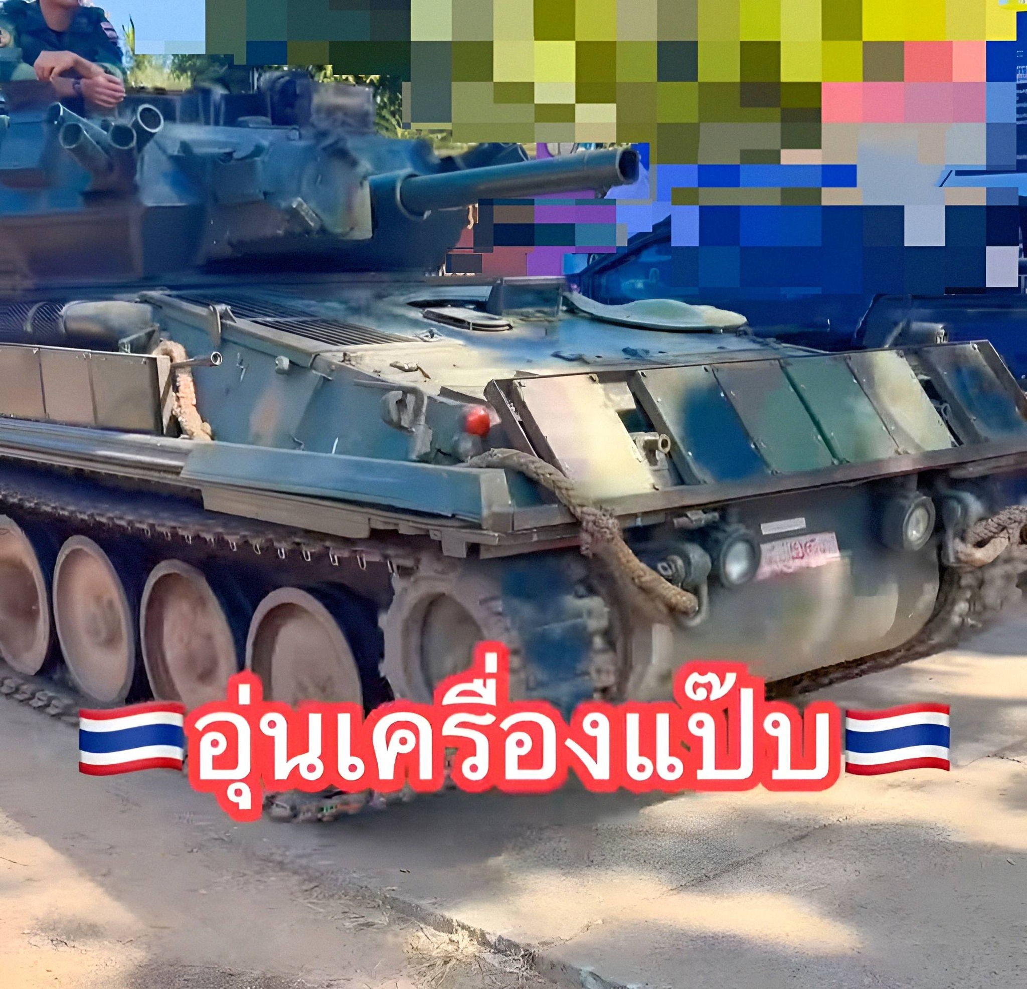 Unexpected crossover. Two Thai FV101 Scorpion tanks were spotted equipped with ERA from the VT-4. I’m not sure whether the ERA was taken from one of the two VT-4s that were damaged by a barrel explosion or what.