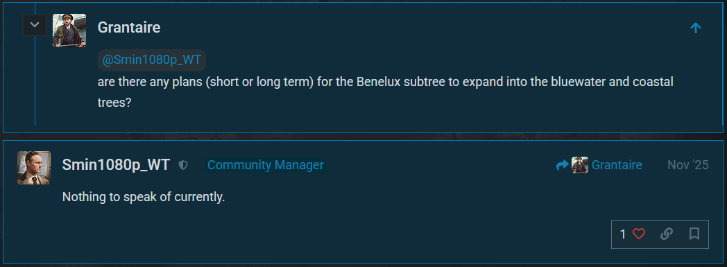 We know from CM’s that Gaijin won’t be working on Belgian or Dutch naval in 2026 or early 2027, so aircraft and ground vehicles are my best bet.