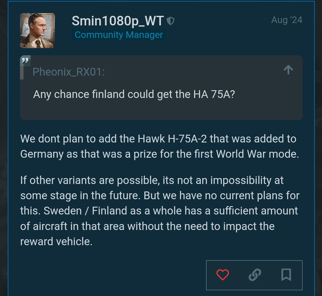 I can still understand not putting it in the Finnish subtree since, at its core, its just another copy paste captured vehicle. But it should absolutely be in the French tree since it was a variant unique to France first and foremost prior to its capture, making France the defacto most entitled nation to it. It’s almost the exact same situation as the Merkava Mk.1. Like the Merkava Mk.1, its addition to France actually serves a purpose: to fill a BR gap in the tree, specifically the one that exists between the H-75A-1 and A-4 in realistic battles. If it wasn’t unreasonable to expect Gajin to add the Merkava Mk.1 to Israel, then its not unreasonable to expect them to add the H-75A-2 to France.