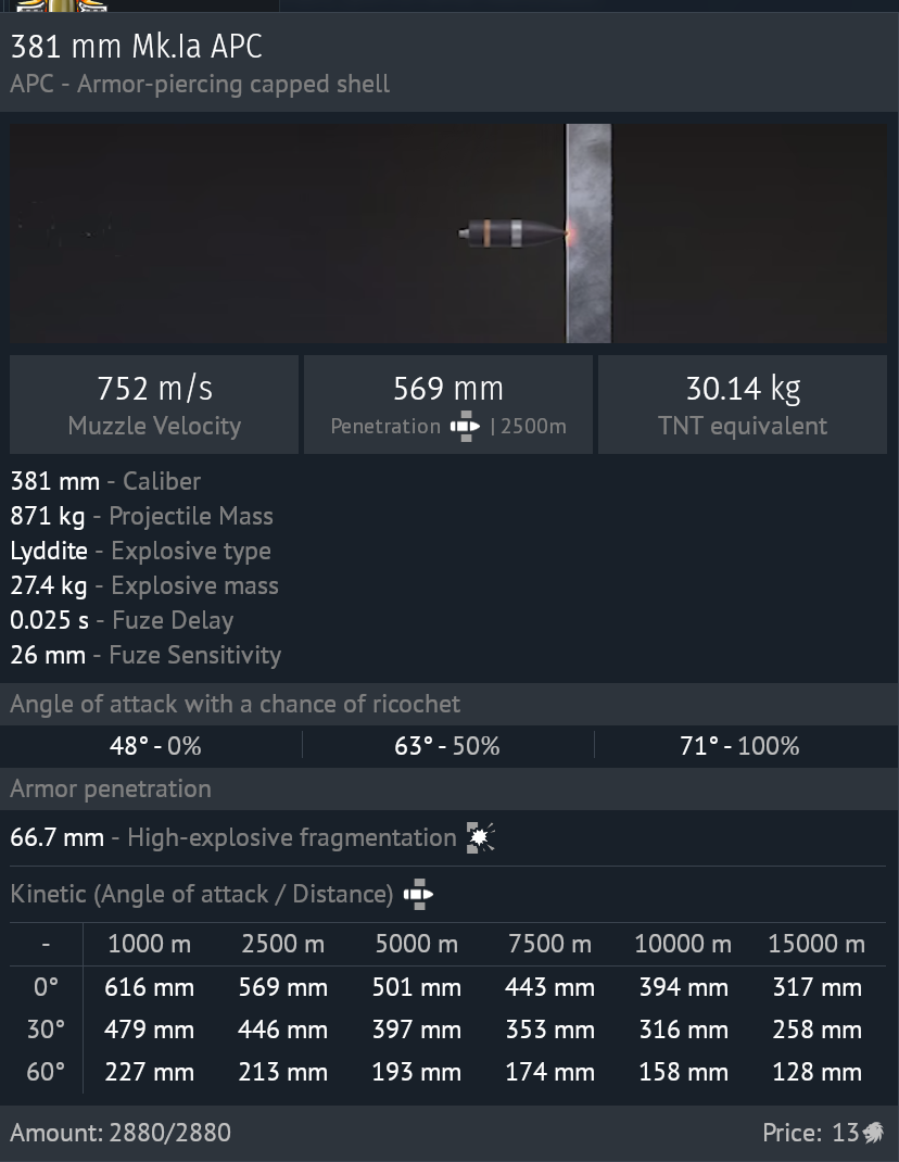 Barham basically has Contact fuse AP, that doesn’t go far into ship before its charge goes off, meaning its basically useless at plunging fire.