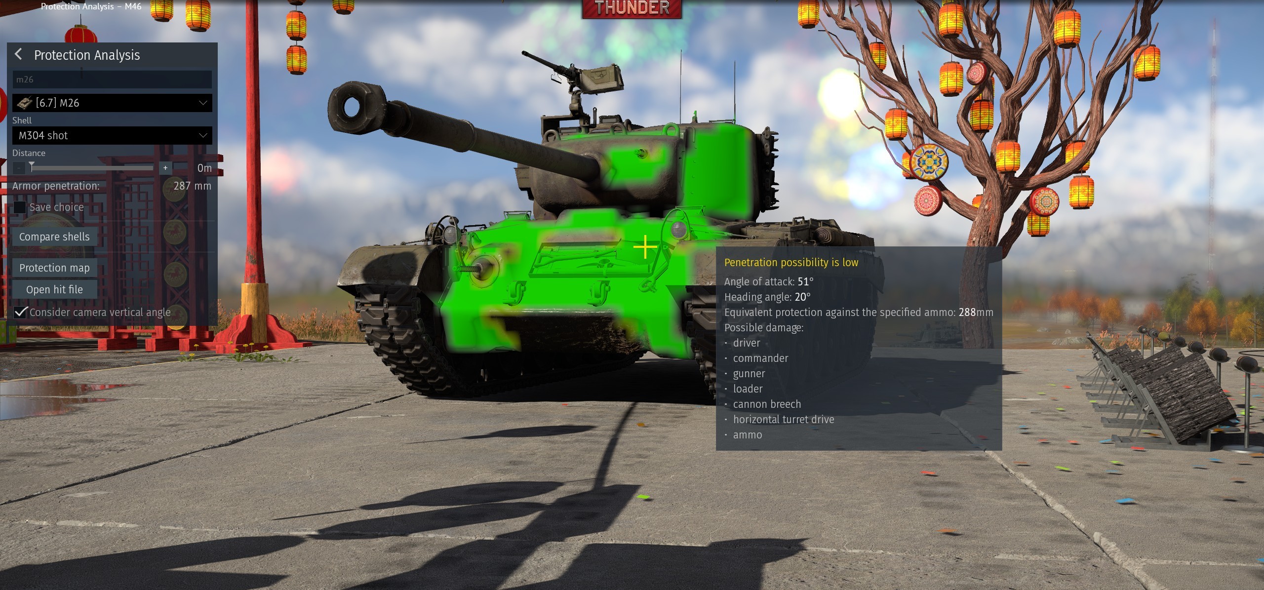 from 20m distance, M304 90mm APCR from M26E5 in M46 ufp, there should be a clear penetration according to game.