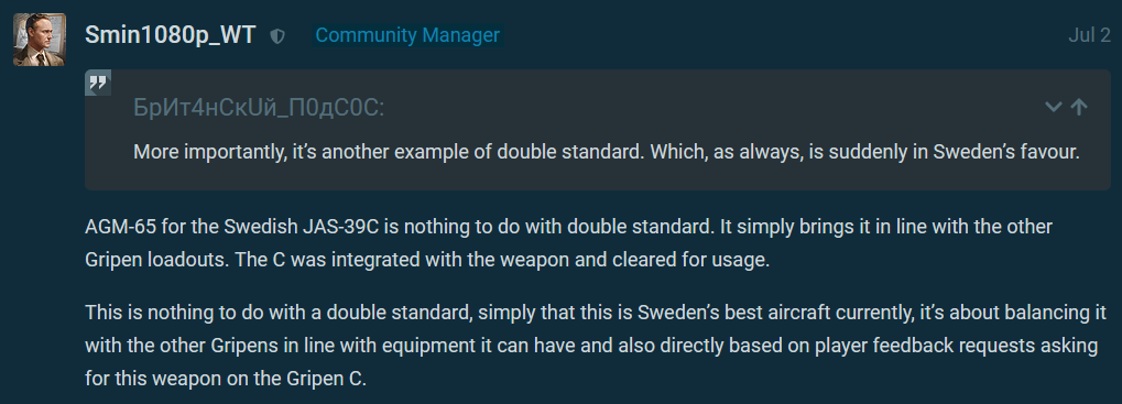 I don’t understand the logic of the developers, because for top-tier aviation, for example, they gave much less important things (which were also usually not purchased) to balance the same plane between different nations.