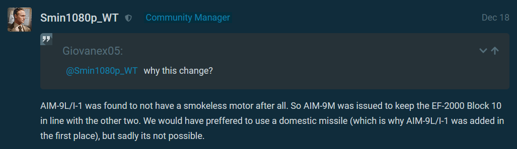 It’s really strange that the smoke/smokelss 9L-I-1/9M missile is considered by the developer to be an important element for balance, but LDIRCM is not.