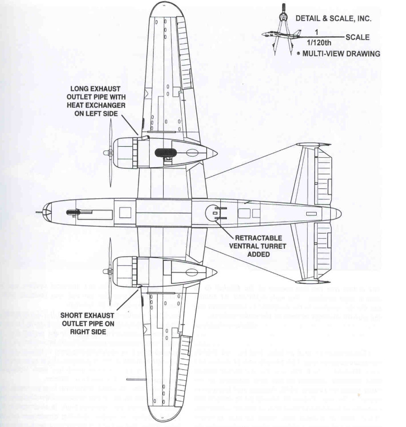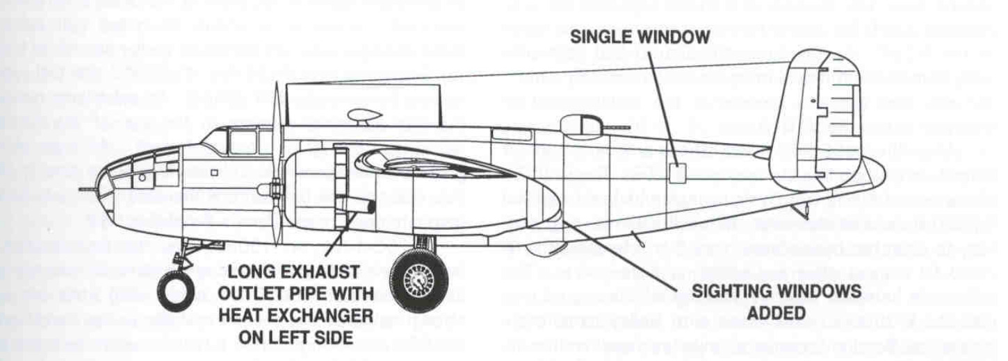 These new defensive systems increased maximum weight by 1,360 pounds compared to the B-25A, reducing top speed by about 15 mph and slightly degrading the rate of climb. The maximum operating range dropped by only 50 miles. Despite these minor performance penalties, the Army considered the improved defensive firepower well worth the trade-off. One distinctive feature of the B-25B was that the right engine’s exhaust stack was noticeably shorter than the left.