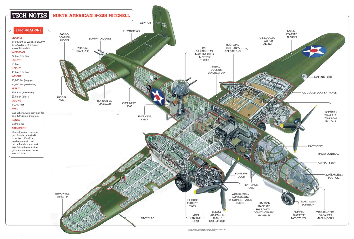 The most famous B-25B mission was the Doolittle Raid of April 18, 1942. Sixteen modified B-25Bs, led by Lt. Col. James H. Doolittle, launched from the carrier USS Hornet to strike targets in Japan. To prepare for the mission, the bombers were fitted with greatly increased fuel capacity, had their lower gun turrets removed, and replaced their expensive Norden bombsights with improvised $0.20 models suitable for low-level bombing. The raid targeted Tokyo, Kobe, Yokohama, and Nagoya. Flying at just 1,500 feet, all aircraft reached their targets without interception. However, none returned to the Hornet; most crews ditched or crash-landed in China, while one landed in the Soviet Union. Seven crewmen were injured and three killed in action. Eight were captured by the Japanese, with four surviving the war.