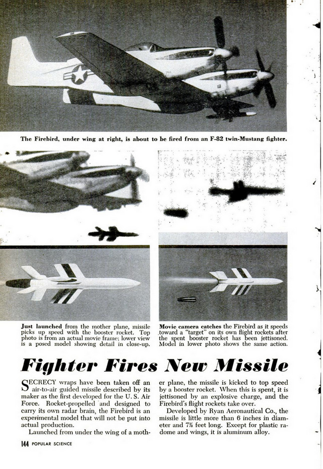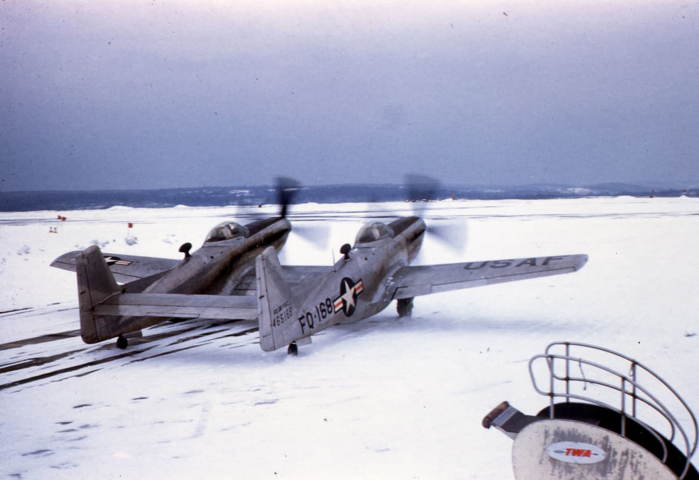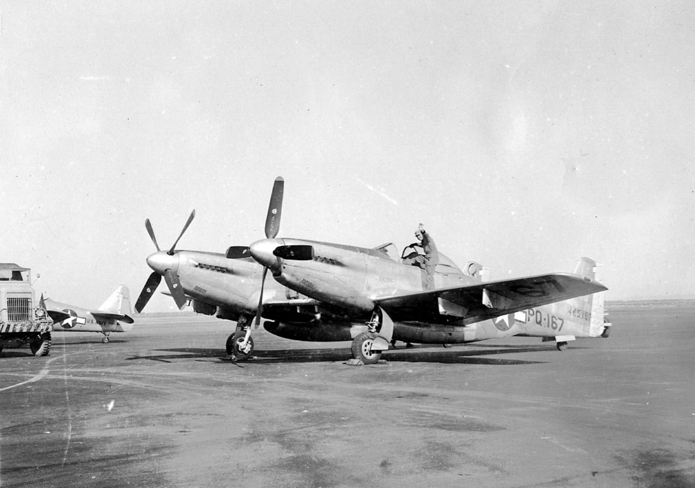 Most went to the 27th Fighter Escort Group at Kearney AAF, Nebraska, for training and evaluation. Two were pulled for conversion into the P-82C and P-82D night-fighter prototypes, while another, serial 44-65179, was used by NACA to mount and test the experimental AAM-A-1 Firebird missile.