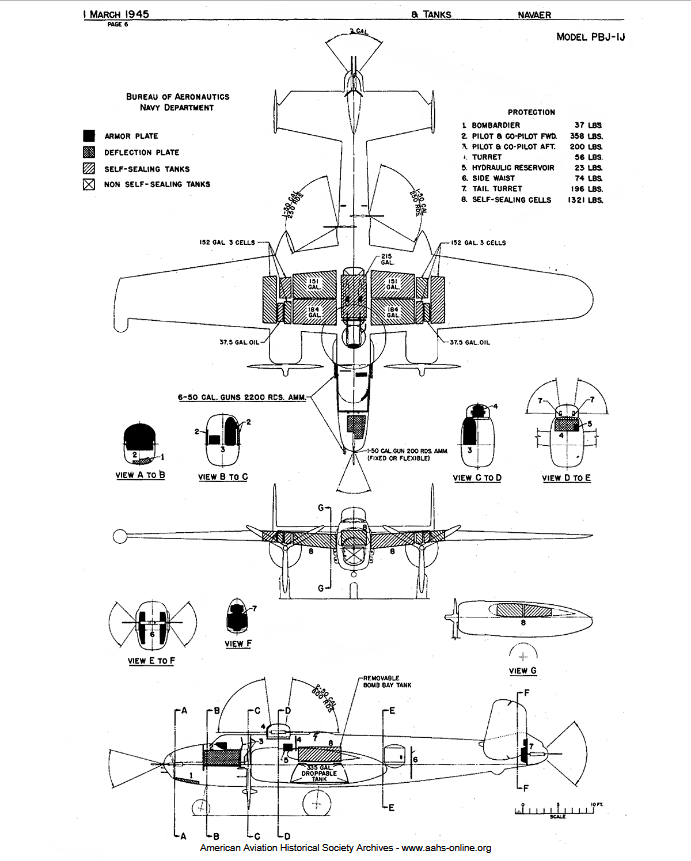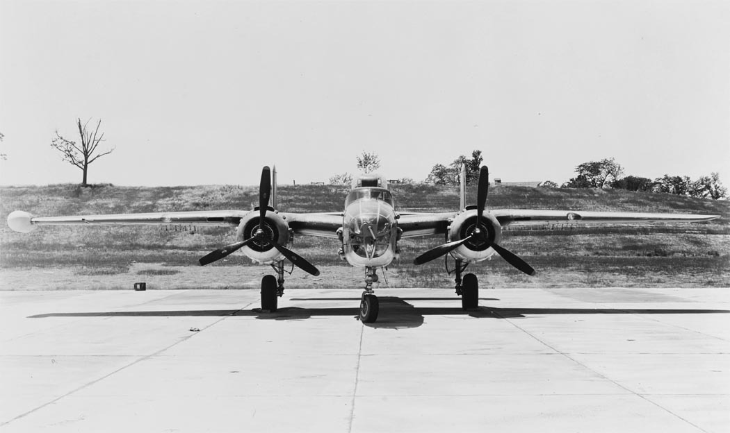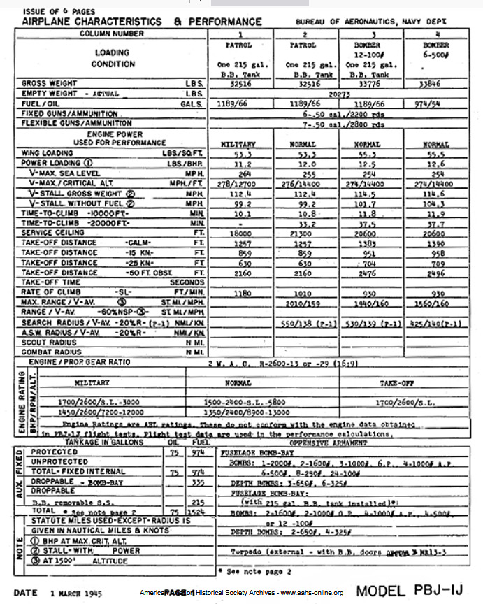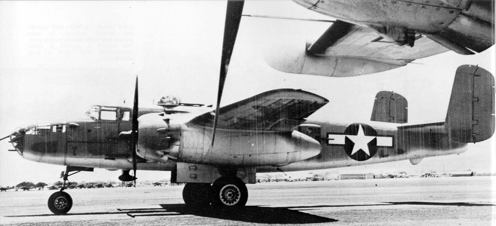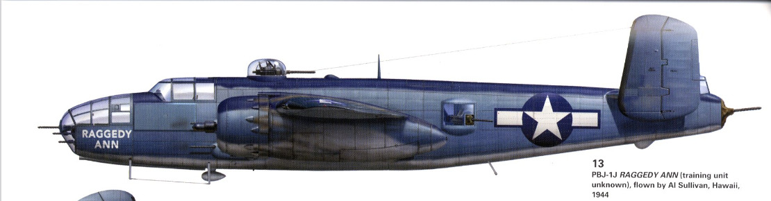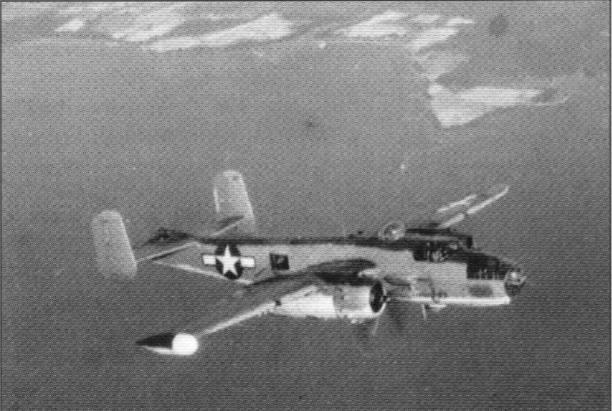 The PBJ-1J was the final Mitchell variant adopted by the Marines. Based on the B-25J, it carried Navy radios and specialized equipment. Radar fit varied: some aircraft had nose-mounted AN/APS-3 radomes, while later production PBJ-1Js moved the installation to the right wingtip. Armament included underwing racks for up to eight 5-inch HVAR rockets, in addition to bombs.