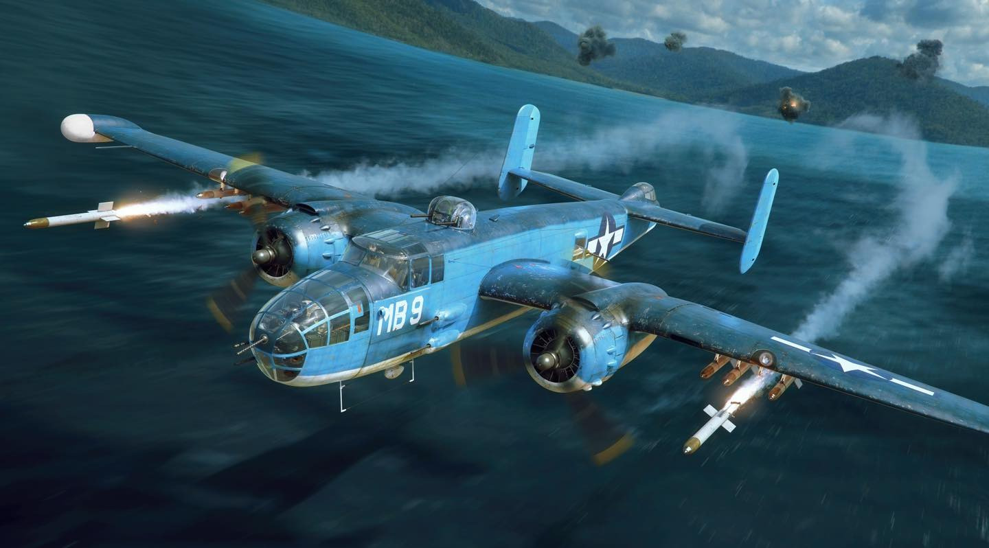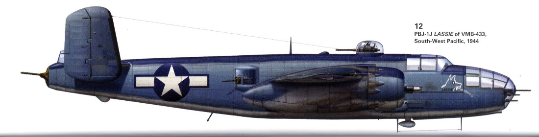 PBJ-1Js began reaching Marine squadrons in early 1945. VMB-612 replaced its older aircraft with J-models, while other squadrons supplemented their earlier PBJs with the type. In May 1945, VMB-612 modified both its PBJ-1Ds and new PBJ-1Js to carry two 11.75-inch Tiny Tim rockets, mounted on either side of the fuselage above the bomb bay doors. These rockets were launched by free-fall and ignited after clearing the aircraft, allowing bomb loads to be carried simultaneously. PBJ-1Js employing Tiny Tims flew night missions against southern Japan in August 1945, in the final days before surrender.