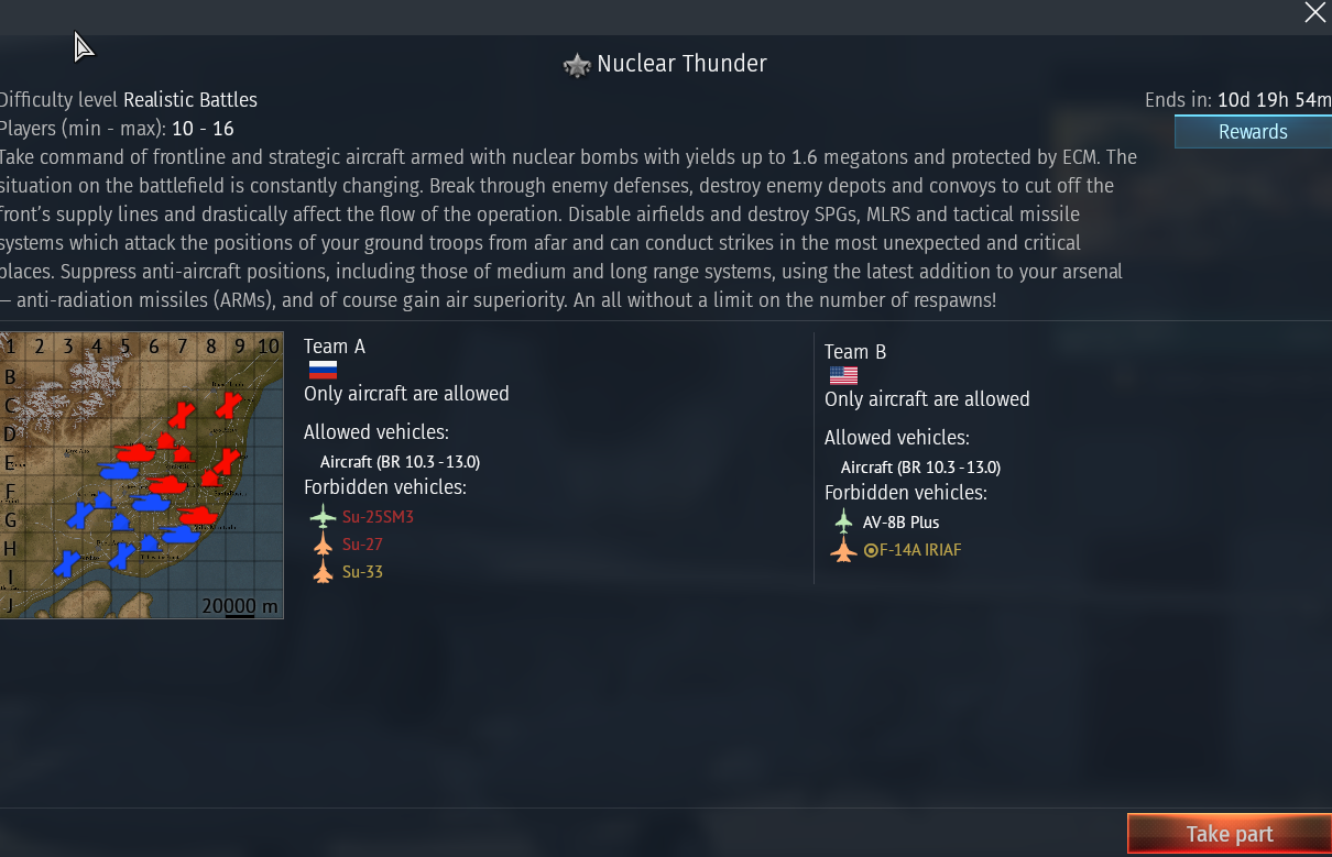 - Sessions in the event are now split to 2 Battle Rating ranges: “pre-top” 10.3-12.0 and “top” 11.7-13.0.