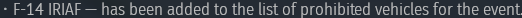 Not having to face top tier planes in 10.3s is NOTHING but a good thing, and the Iriaf F-14 being banned was something that was obviously going to happen for the health of the event.
