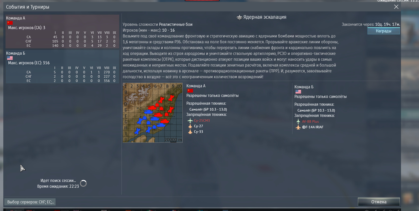 I cannot start the game after new update where 12.0 and lower are split. When you updating the game in the middle of event, please, think about how your update should work. We have 300 USA and 0 USSR players on high tier.