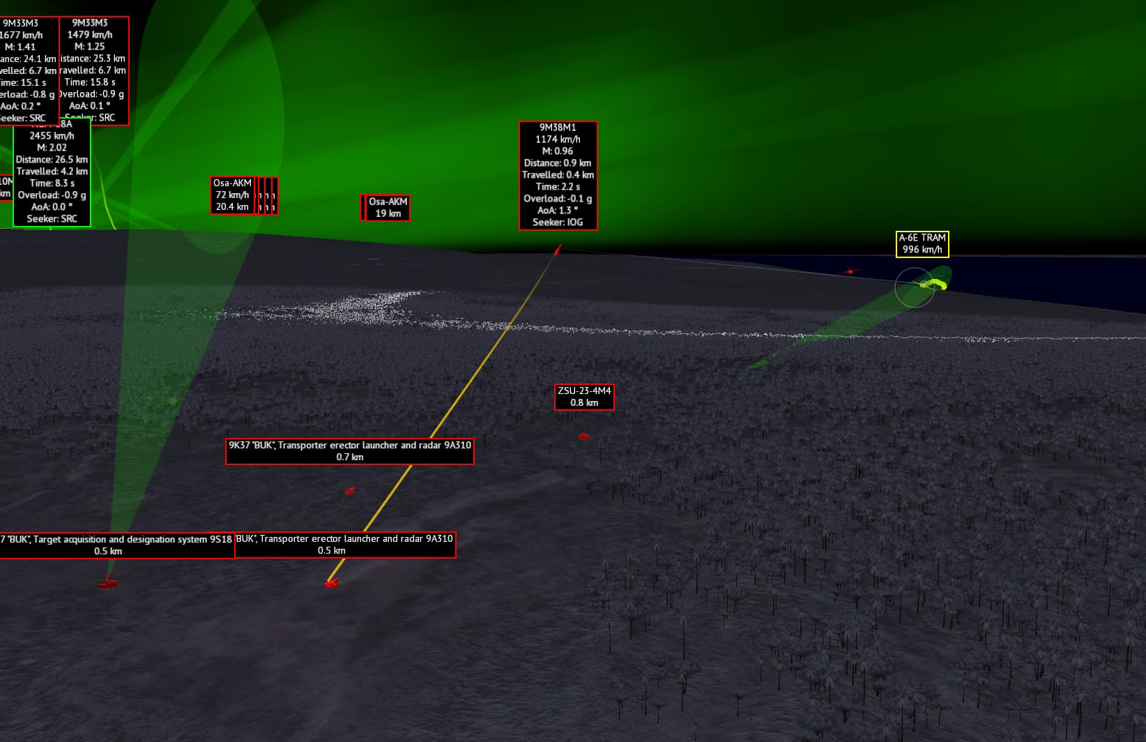 A BUK fired a missile at me from behind a hill, and the second fragment is a MiG-29 flying over the base as if it were at home.
