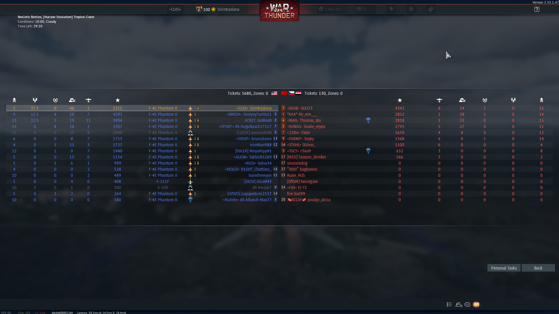 So after a previous horrible match where my team wasn’t interested in intercepting nukes or even nuking anything, I got this match. My team decided to begin nuke rushing and the Mig-23s switched to the defensive. We ended up controlling the enemy team’s SP hard and winning.
