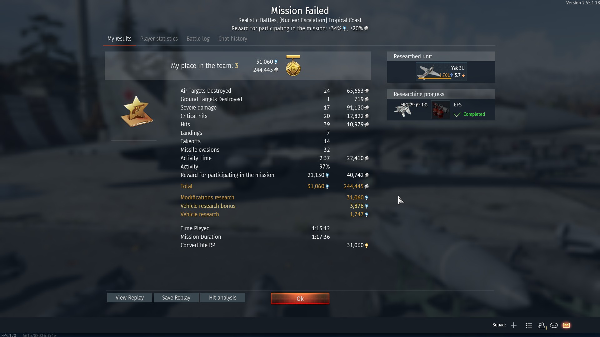 I just love how the 99% of the people that say they are enjoying the event is because they have the F-14/15/16/18 and they are just getting 70k-80k rp and 500k sl because they are doing a total abuse