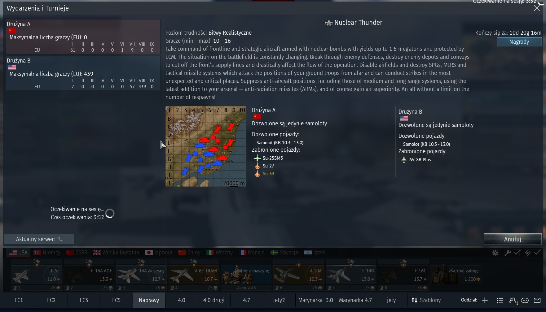 Punkty w wydarzeniu zdobędziesz, grając pojazdami USA i ZSRR. Wydarzenie możesz znaleźć w zakładce „Wydarzenia i Turnieje” → Nuclear Thunder.
