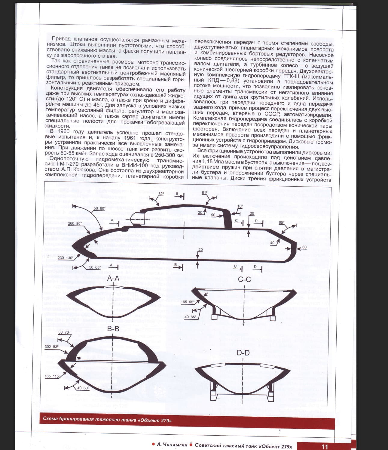 The schematic labeled “Схема броневой защиты танка «Объект 279»” shows the hull plates at pronounced angles: