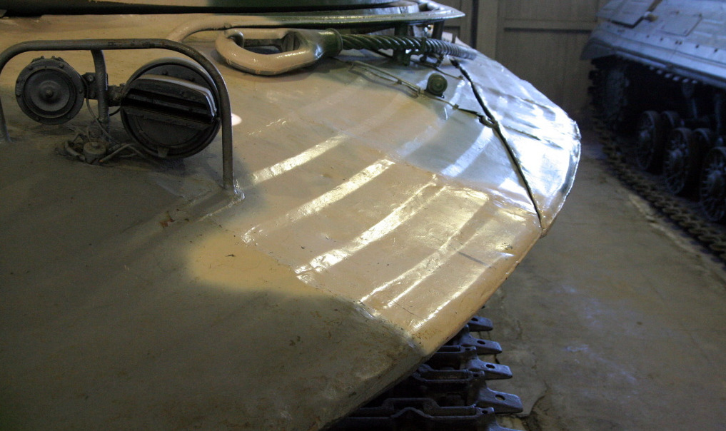 The hull was welded from rolled armor plates of large thickness. The front upper hull plate (the glacis) was a 269 mm rolled plate, joined to the 192 mm side plates and 92 mm rear plate by welding.
