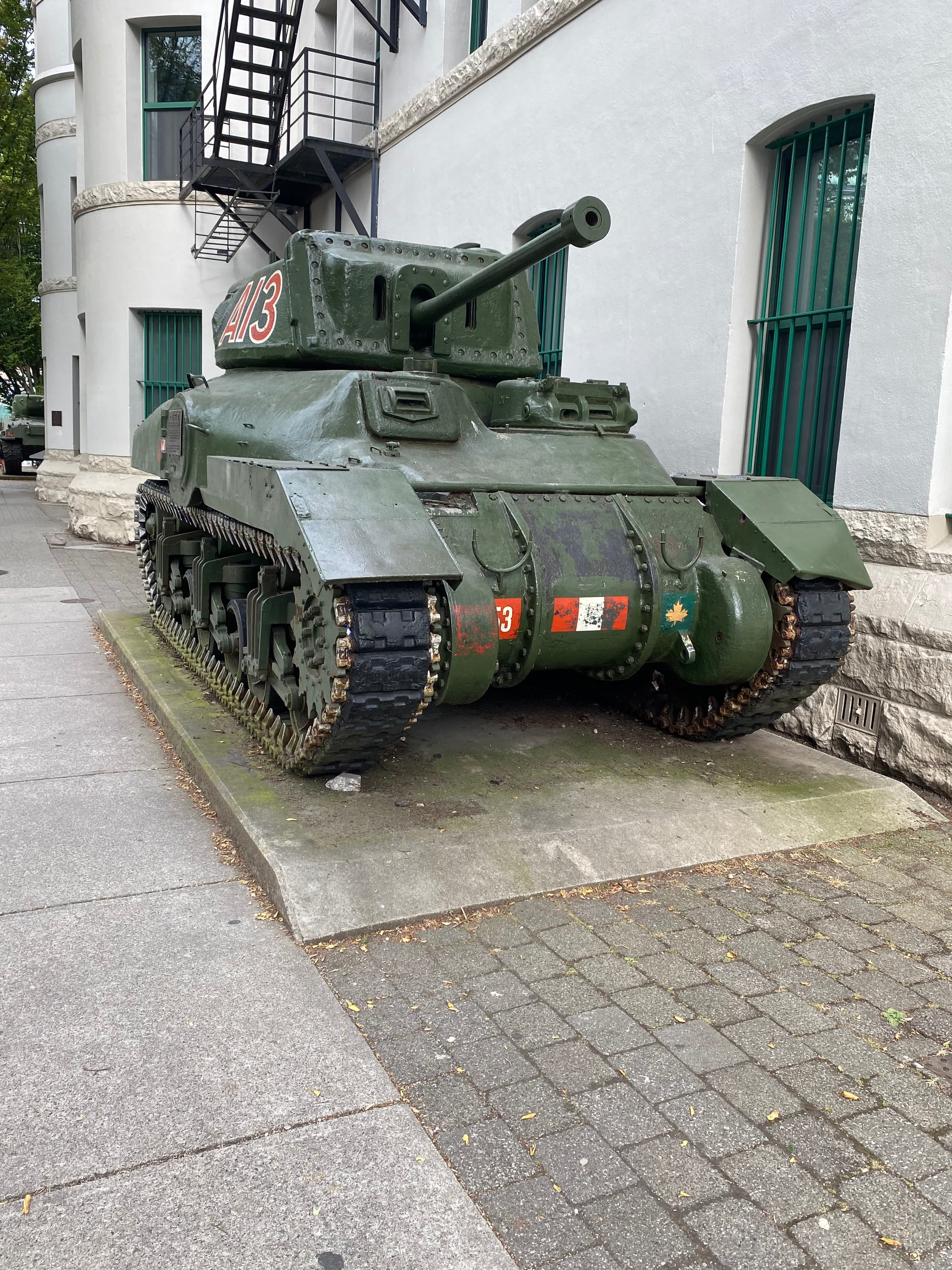 Tho the Sherman is most likely the M4A2E8(what Canada had called the M4A2(76)W HVSS), as Canada had bought a bunch ofter the war for home and all 76mm Sherman displays in Canada are them. (the A3s where only on loan use in Korea.)